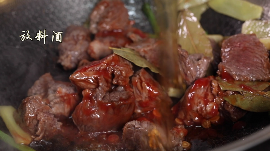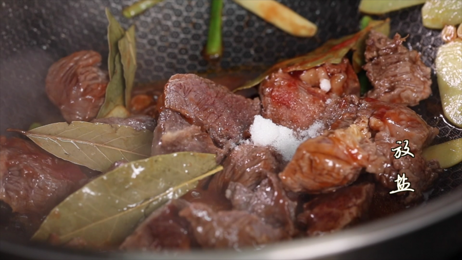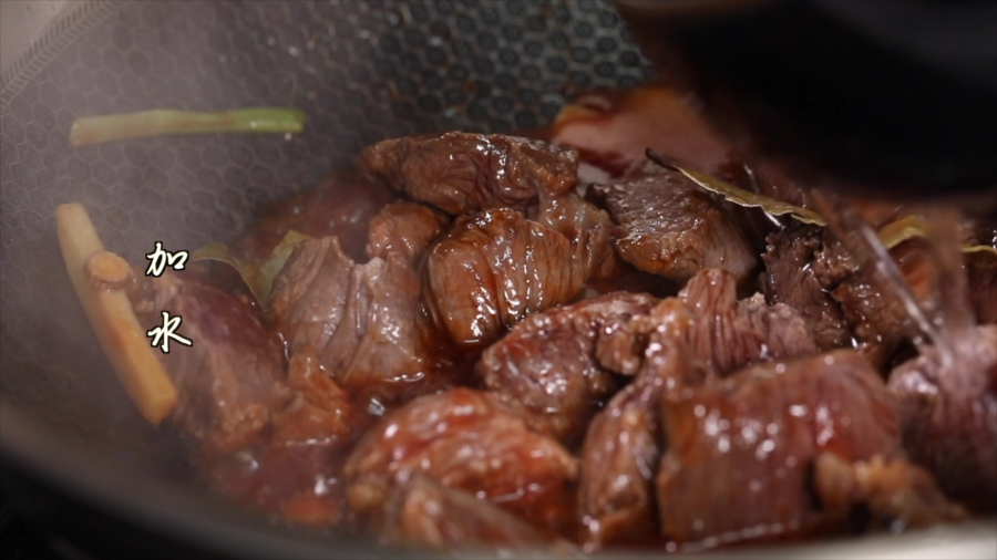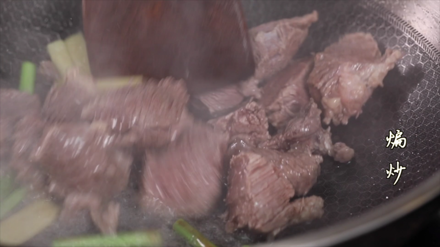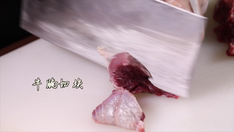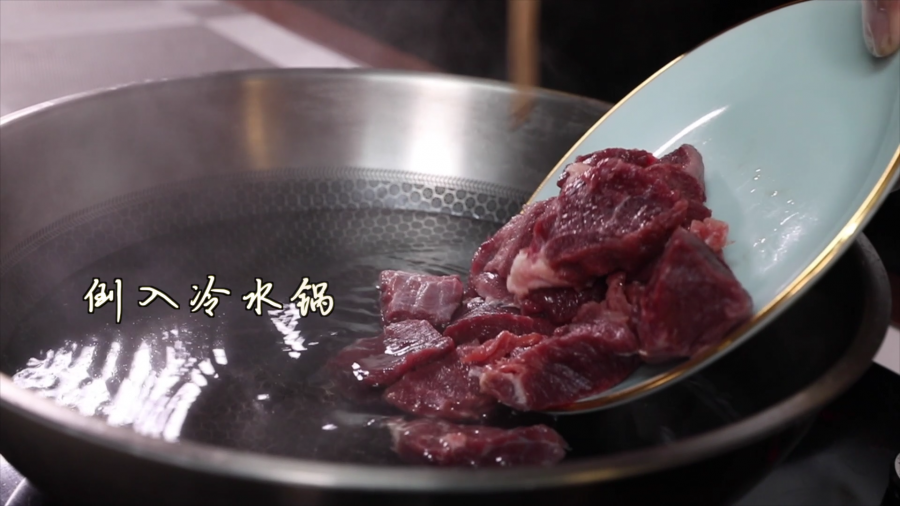 将牛腩切成块,倒入冷水锅中煮开洗净